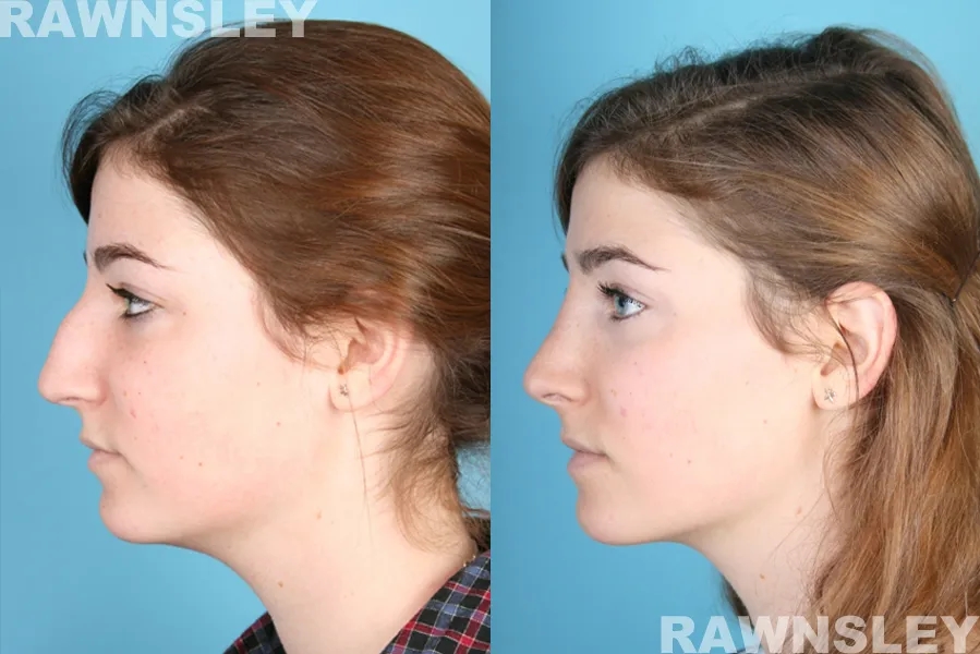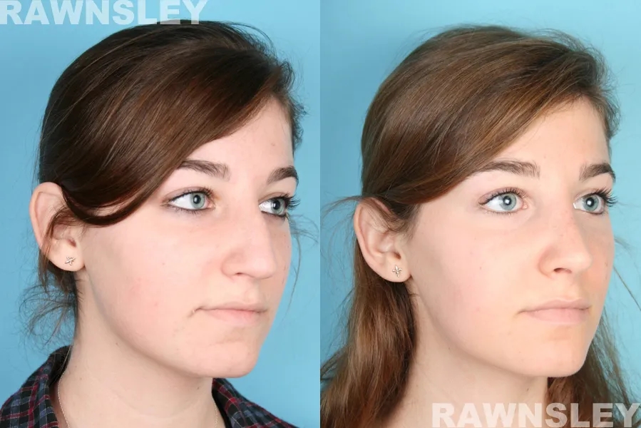 As a board certified Facial Plastic Surgeon, Dr. Rawnsley has a unique familiarity with the subtle elements that make up a balanced face. He could clearly make out her asymmetrical, widened tip. He also determined that she had suffered a deviated bridge. These, in conjunction with a nasal hump, gave her nose a visually disproportionate focus on her face.